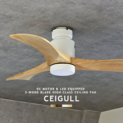 ■シーリングファン DCモーター LED搭載 調光 薄型 軽量 CEIGULL シーガル リビング ダイニング 寝室 北欧 モダン アンティーク 3枚羽根 ナチュラル ブラウン ウッド 天然木 ゴールド ブラウン ホワイト ナチュラル ミニマル おしゃれ 照明 ハイスペック 省エネ カフェ